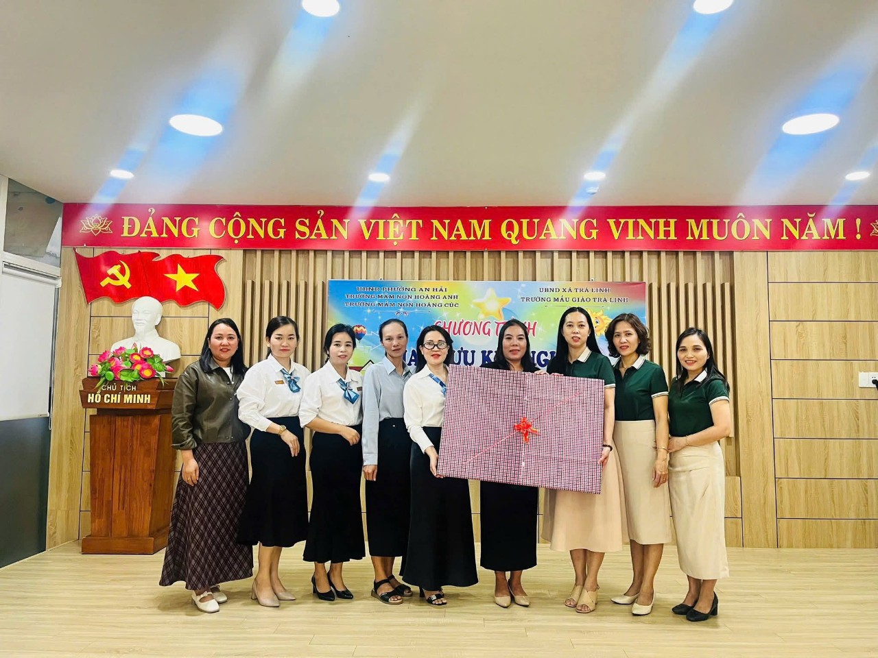 Nhằm thể hiện tình cảm gắn bó, tinh thần đoàn kết và sự sẻ chia giữa ba nhà trường, trong chương trình kết nghĩa ngày hôm nay, ba trường đã trao tặng nhau những phần quà lưu niệm mang ý nghĩa thân tình và bền chặt. Nhân dịp này, Trường Mầm non Hoàng Cúc và Trường Mầm non Hoàng Anh cũng tặng quà cho học sinh Trường Mẫu giáo Trà Linh.