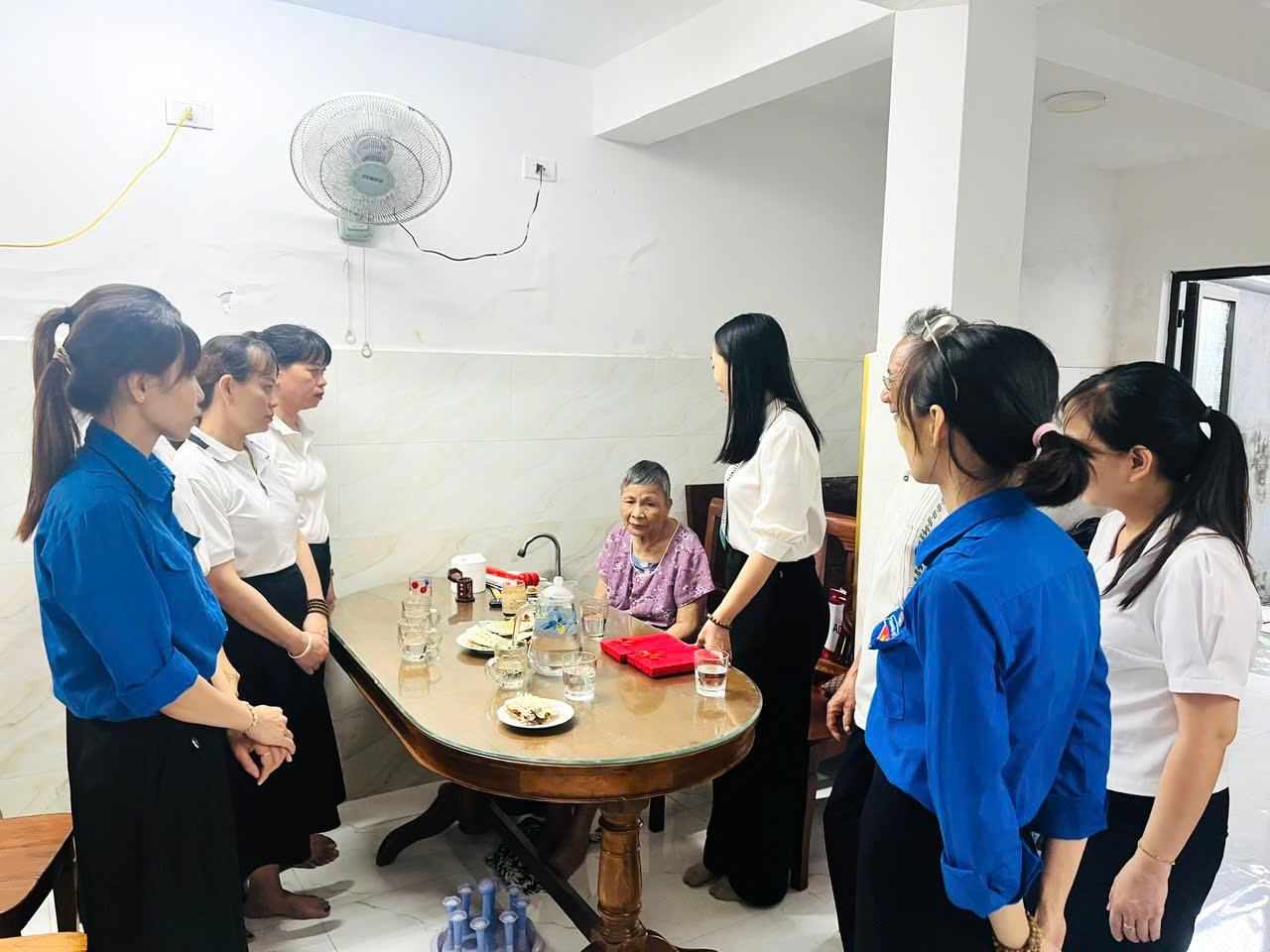 Đại diện Chi bộ, Ban Giám hiệu, các Tổ trưởng chuyên môn và Đoàn Thanh niên nhà trường đã đến thăm gia đình cô giáo Nguyễn Thị Thúy Hằng – có mẹ ruột là bà Cao Thị Tý và mẹ chồng là bà Nguyễn Thị Bảy, đều là thương binh hạng 4/4. Đồng thời, đoàn cũng đến thăm ông Lê Văn Hoàng – thương binh hạng 2/4, là thân sinh của cô giáo Lê Thị Thanh Thủy.