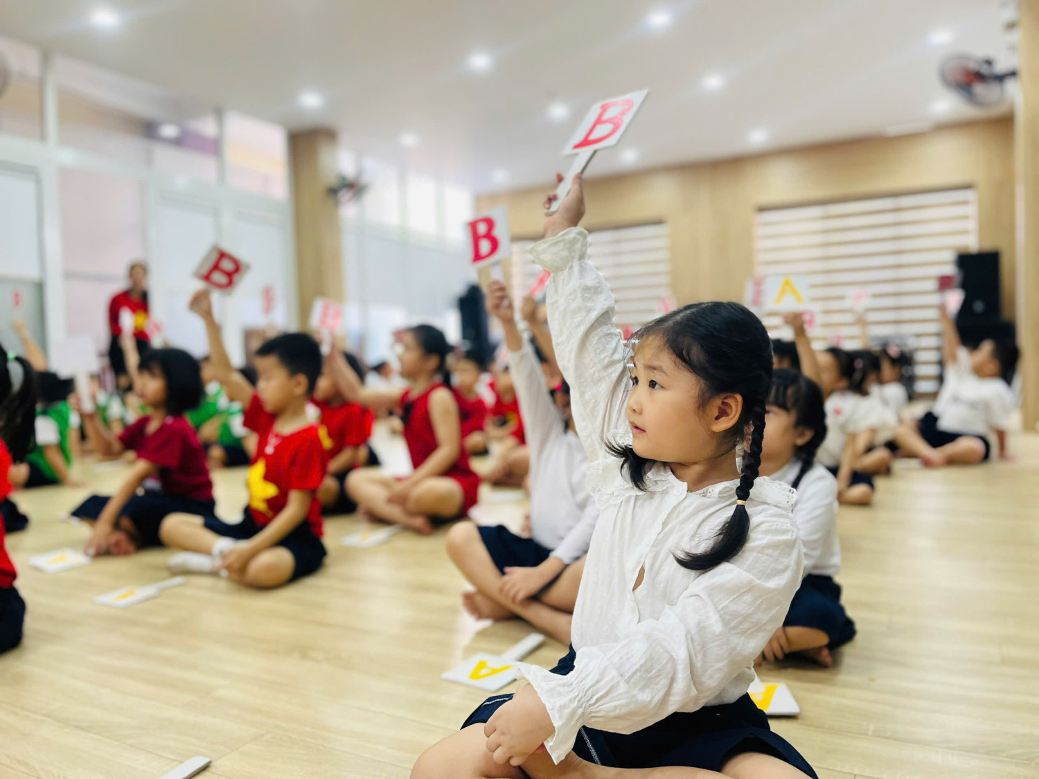 Hội thi diễn ra trong không khí sôi nổi, hào hứng, tràn đầy tiếng cười. Đây là sân chơi trí tuệ bổ ích, giúp trẻ được trải nghiệm, khám phá và mạnh dạn thể hiện bản thân. Thông qua hệ thống câu hỏi Tiếng Anh phù hợp với độ tuổi, các bé đã vận dụng linh hoạt kiến thức đã học để hoàn thành phần thi một cách tự tin và ấn tượng.